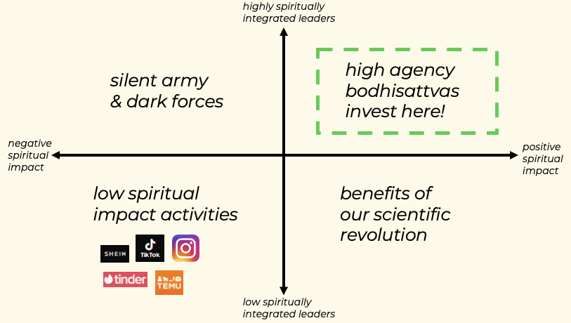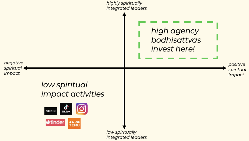 Maybe this framework could be used as a thought exercise for writing an investment mandate, maybe a new kind of venture capital thesis oriented toward high spiritual impact.